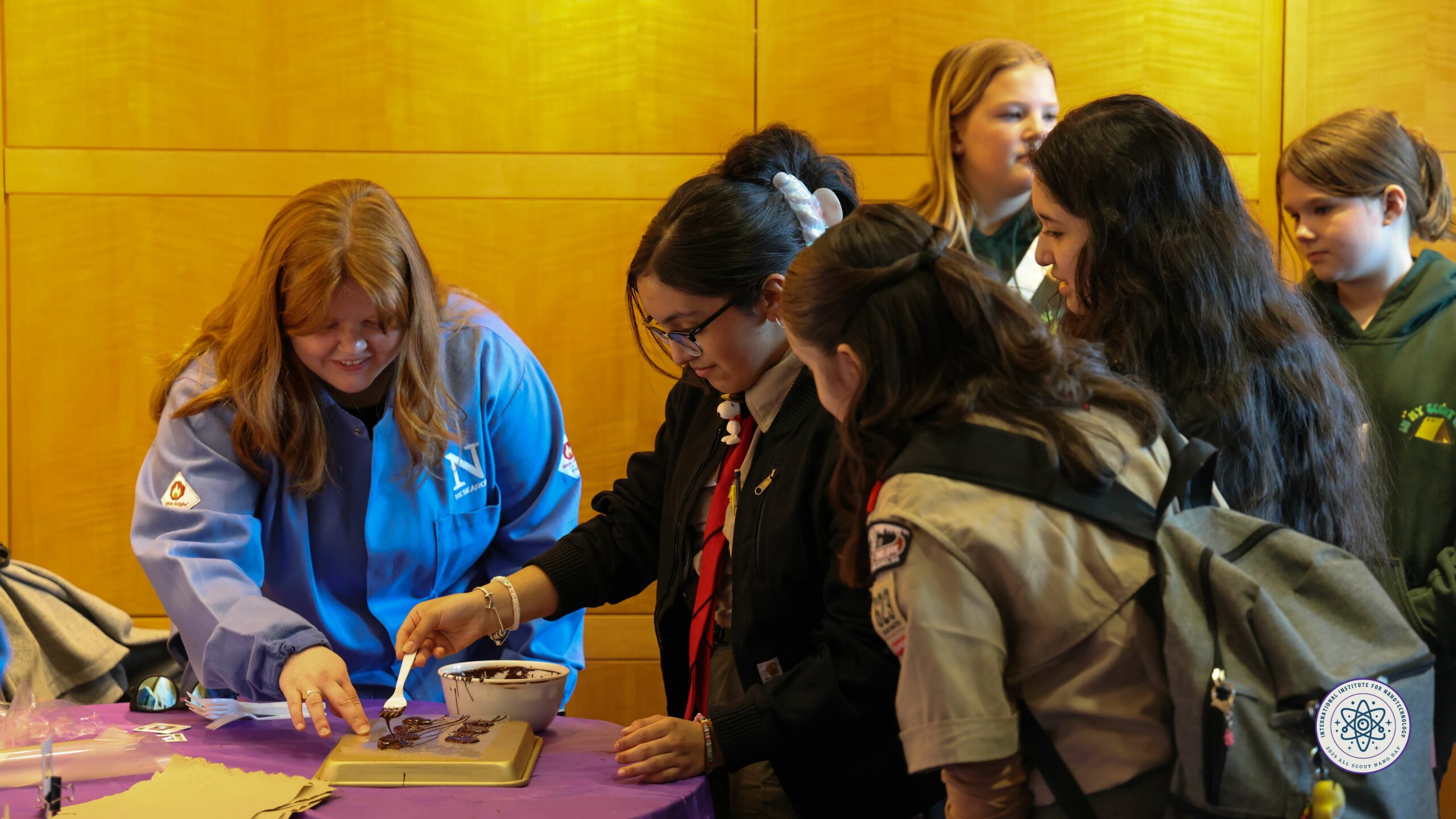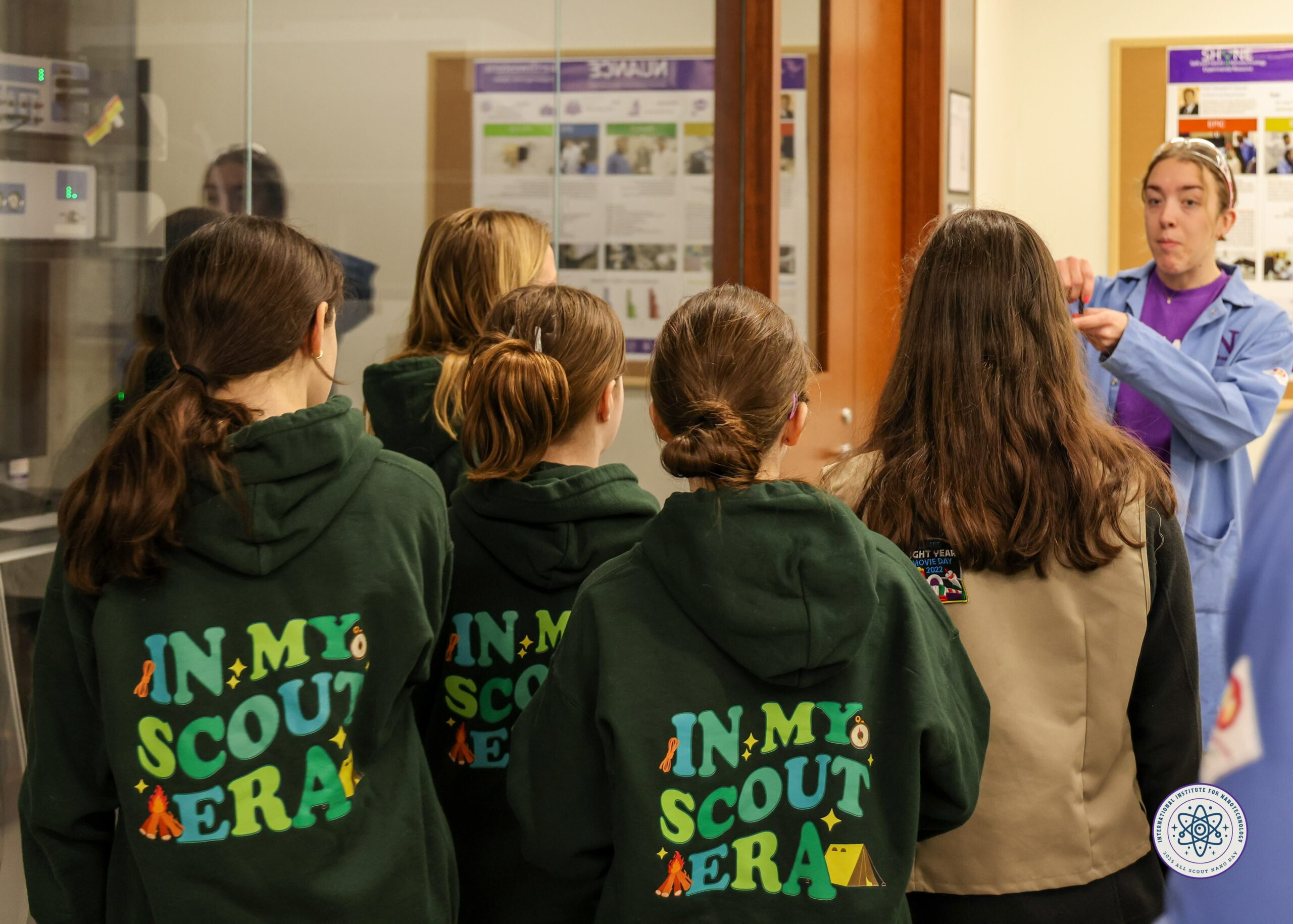 Banner image for Northwestern University’s International Institute for Nanotechnology (IIN) reading “ALL SCOUT NANO DAY” with the subtitle “A Day of Discovery,” over a photo of scouts wearing safety glasses during a hands on activity.The International Institute for Nanotechnology (IIN) at Northwestern University is excited to host the annual All Scout Nano Day, continuing a tradition that began with its inaugural event in 2003. Over the past 20 years, more than 1,600 Boy Scouts, Girl Scouts, and Venturing Crew members have visited Northwestern’s campus to delve into the exciting field of nanotechnology. This unique program was envisioned by Michael Kleppinger, a retired Northrop Grumman engineer and assistant scoutmaster, and was brought to life with the support of Prof. Richard Van Duyne, an Eagle Scout and esteemed Professor of Chemistry at Northwestern from 1971 to 2019.