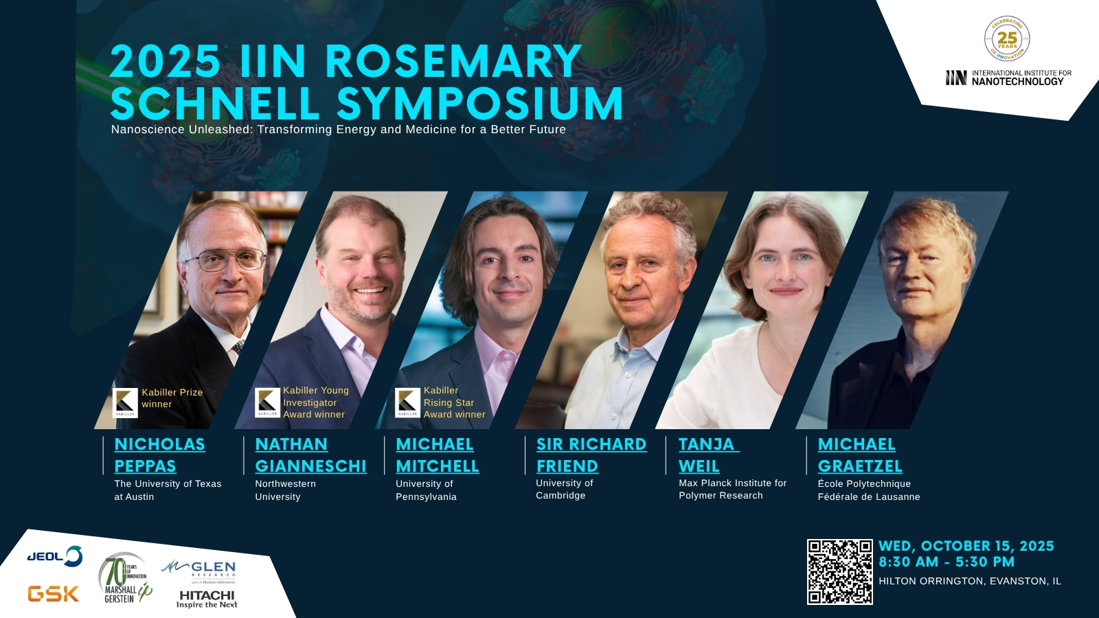 The 2025 symposium will take place on Wednesday, October 15, 2025, at the Hilton Orrington Hotel in Evanston, Illinois. This year’s program features a lineup of speakers that includes some of the most influential voices in nanoscience, energy, chemistry, and medicine. It will also showcase the winners of the 2025 Kabiller Awards, the world’s largest monetary awards for achievement in nanomedicine.